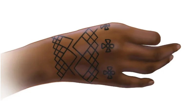 إعادة بناء الوشم الهندسي على الذراع اليمنى للمرأة