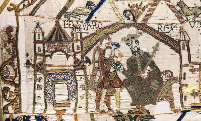 ظلت نسيج السيرة الذاتية العملاق – وهي لوحة قماشية طويلة مطرزة تروي الأحداث التي سبقت معركة هاستينغز في عام 1066 – لغزا لفترة طويلة. على الرغم من أن معظم الباحثين يتفقون على أنه تم تصميمه من قبل الرهبان في دير القديس أوغسطين في كانتربري وتم تطريزه بواسطة نساء ماهرات، إلا أن غرض النسيج وموضعه الدائم لا يزال موضع نقاش.