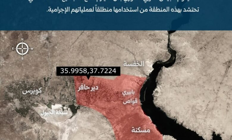 وفي بيان، قالت هيئة العمليات في الجيش العربي السوري إنه “بعد استمرار تنظيم قسد بحشد مجاميعه مع ميليشيات PKK الإرهابية وفلول النظام البائد في هذه المنطقة، ولكونها منطلقاً للمسيرات الانتحارية الإيرانية التي قصفت مدينة حلب: